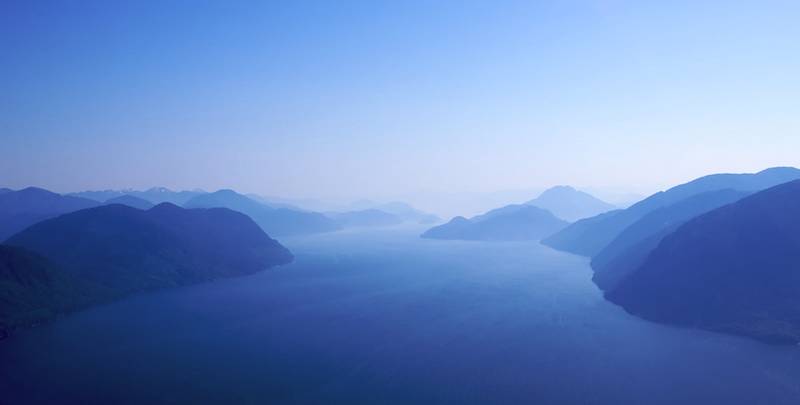 Dieses Foto habe ich in British Columbia, Kanada gemacht. Wir waren von einer kleinen Lodge aus auf dem Weg zu einem Fluss zum Angeln, per Helikopter. Als ich mich nach einiger Flugzeit umschaute, sah ich dass wir die eigentlich wunderschöne Szenerie der vernebelten Berge im Hintergrund hatten. Ich bat den Piloten kurzerhand, ob er kurz wenden könne, damit ich ein Foto schießen kann, was er dann auch gemacht hat.