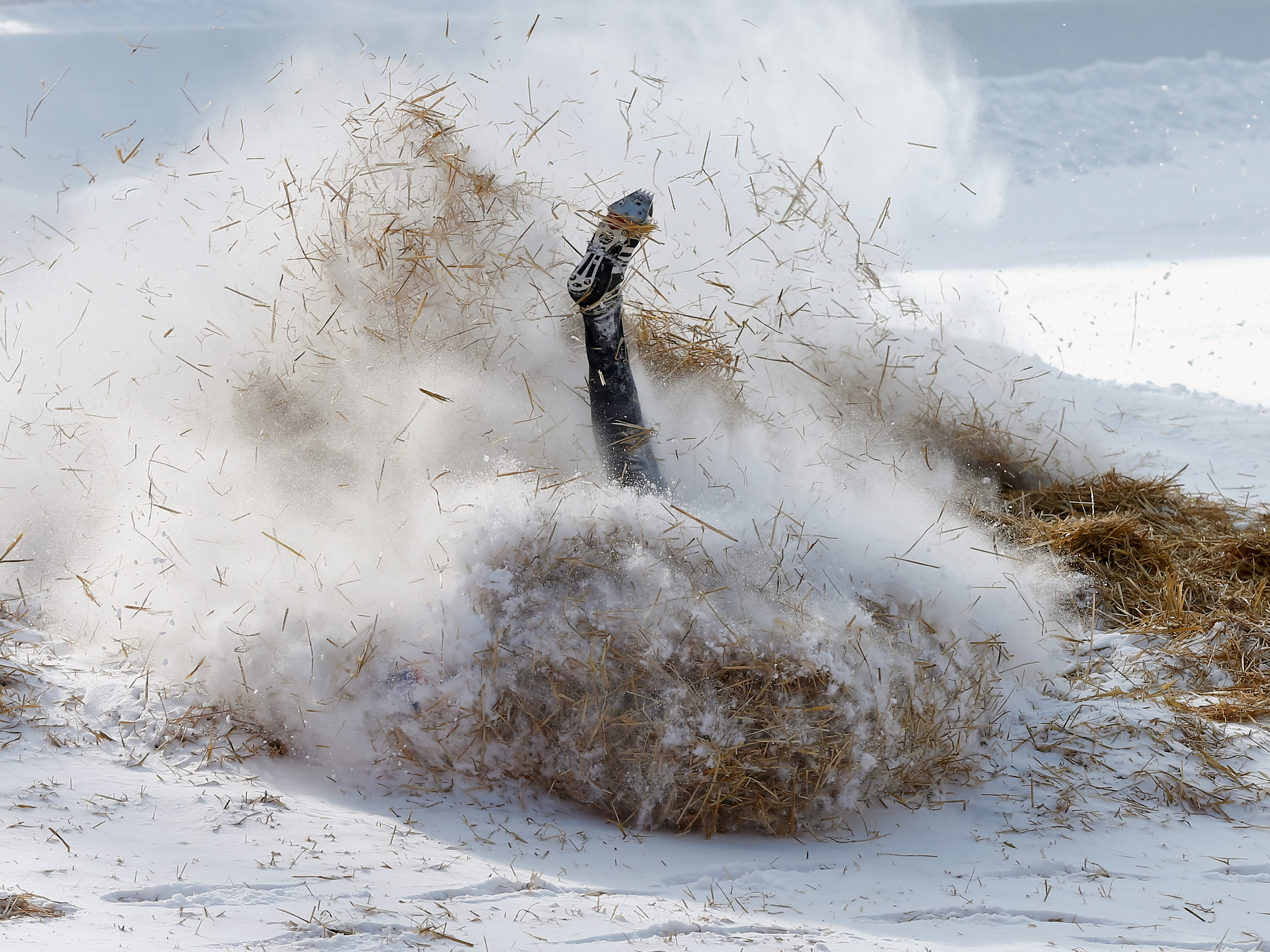 Spektakulär das Siegerbild in der Kategorie Sport: Ein Sturz auf der Bob-Bahn von St. Moritz, fotografiert von Arnd Wiegmann.