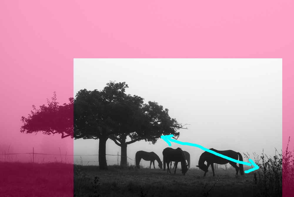 Was weiterhin auffällt, sind die Bäume links neben den Pferden. Da alle eine ähnliche Tonalität haben, fallen sie um so mehr ins Gewicht, und die Pferde werden zu Statisten, obwohl sie doch der Hauptgegenstand Deiner Aufnahme sein sollten: