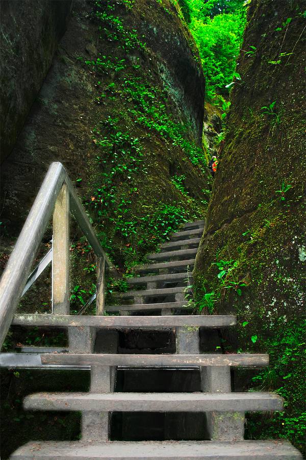 Du sagtest, das Ziel ist nicht in Sicht!? Ich sehe doch aber am Ende der Treppe zwei Personen! Dorthin führt mich die Treppe, und das ist das Ziel, welches mein Auge braucht. Wenn du diese Personen noch etwas geschickter in Szene setzt, hat das Bild mehr Wirkung, der Betrachter weiß damit mehr anzufangen.