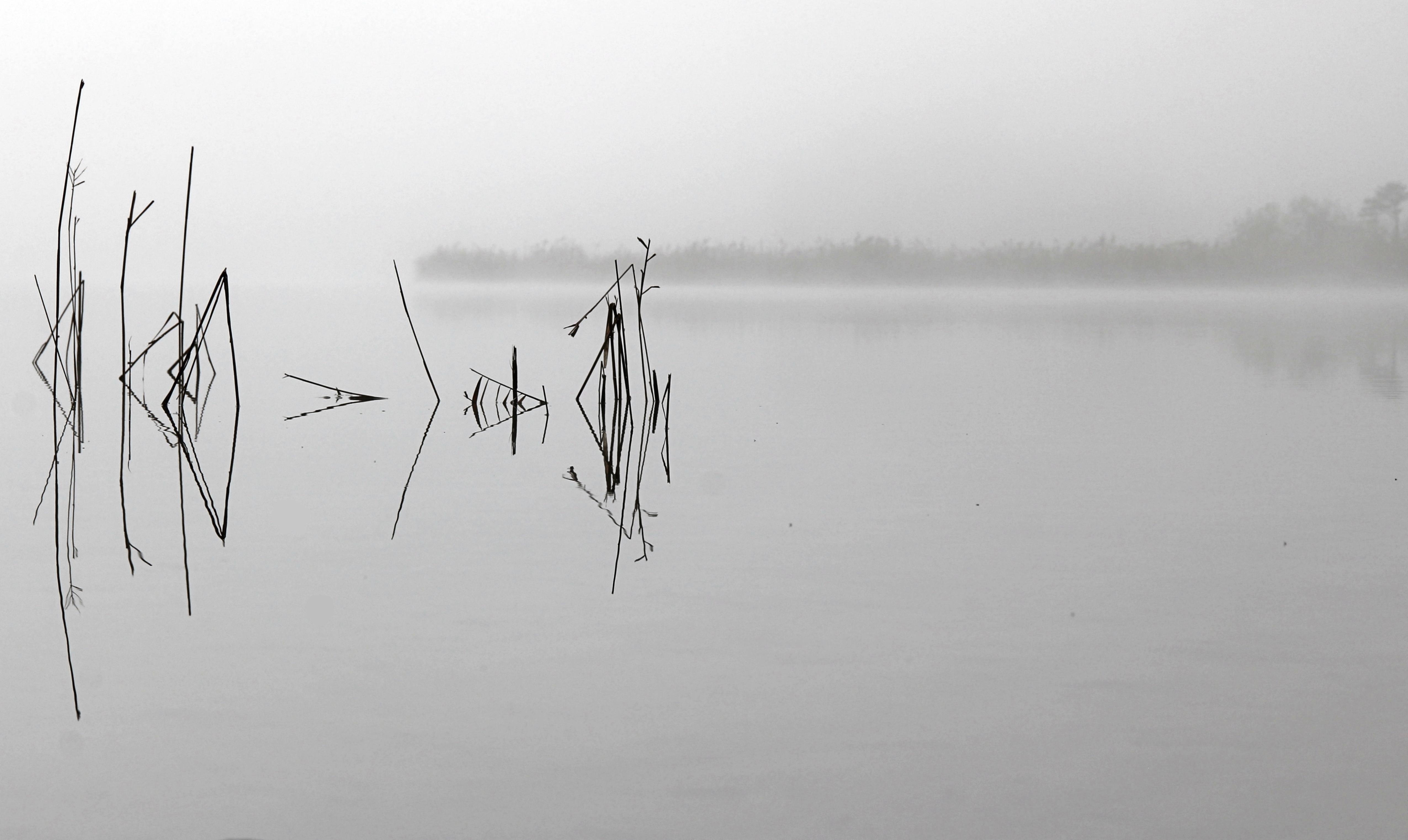 Mir persönlich gefällt das Ausgangsbild am besten. Nach der ganzen Beschnittorgie wird ein Motiv in den Vordergrund gestellt, das eigentlich (vermutlich) gar nicht das Motiv ist. Mit Nebel verbindet man einerseits Stille als auch die nicht-sichtbare Weite. Sehe ich das Ursprungsbild, denke ich an ein Ruderboot, das flüsterleise in das Nichts des Nebels gleitet, vorbei an den Halmen, auf den fast unendlichen See.